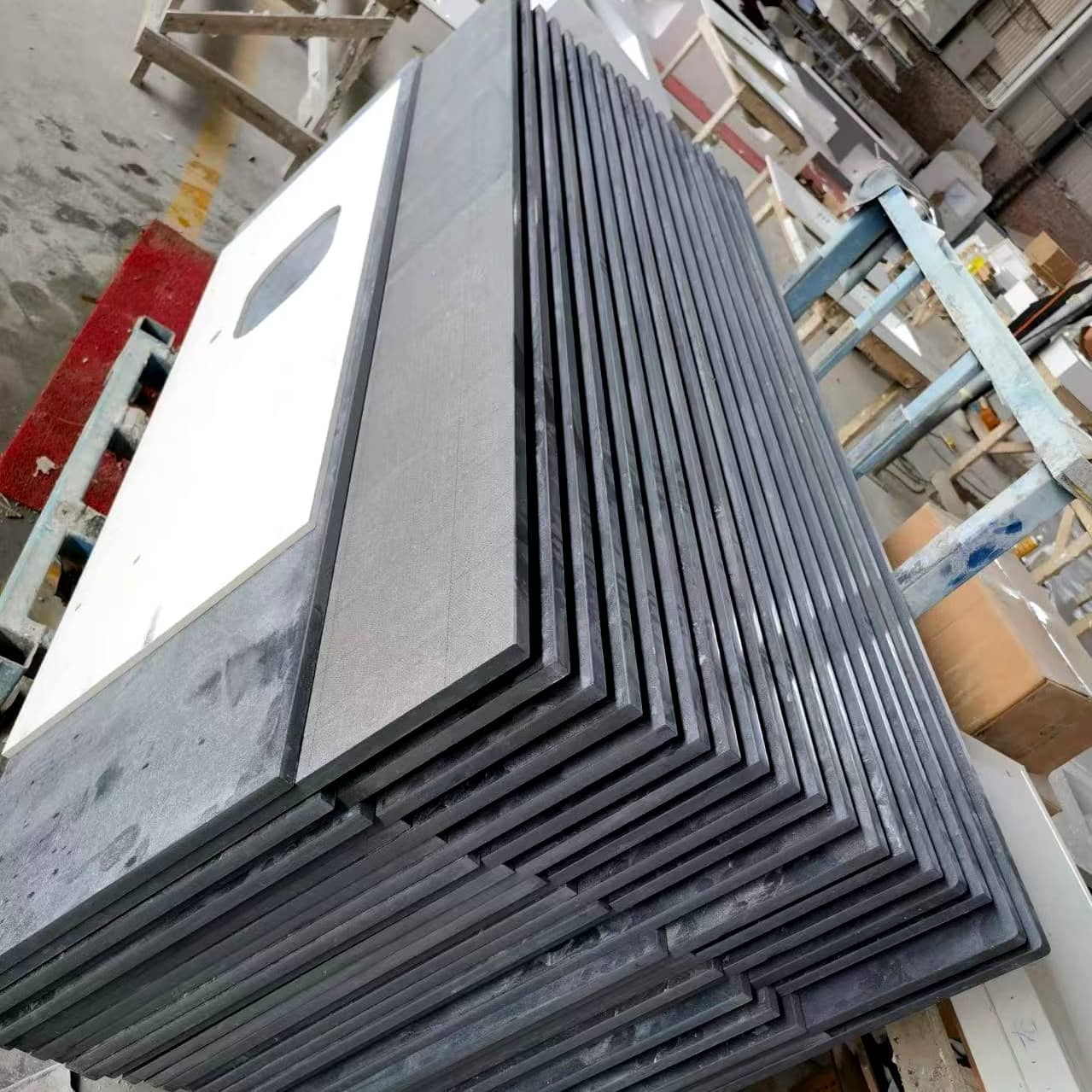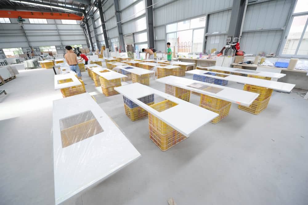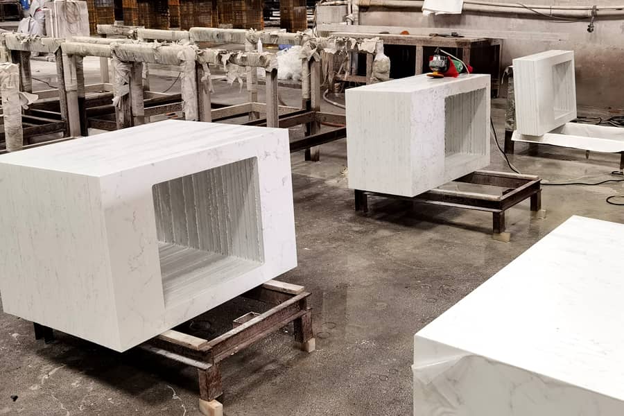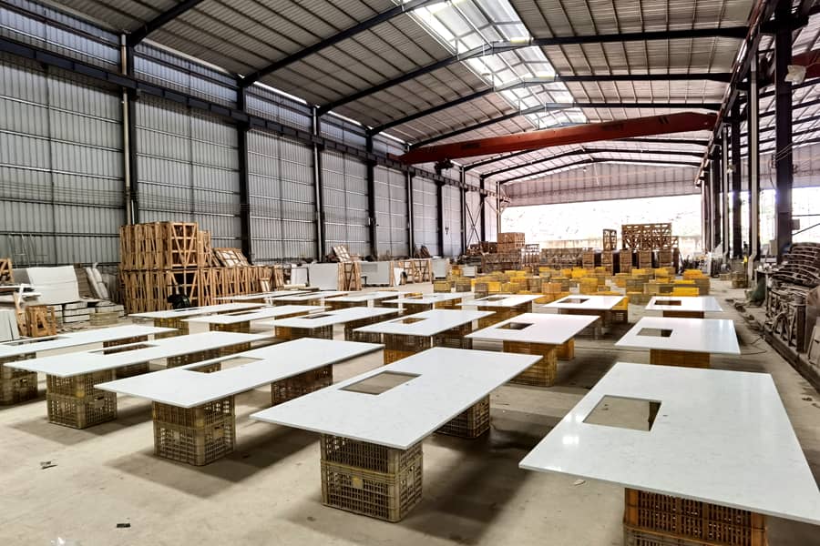 With 15 years of quartz cut to size experience, Aspire Stone has its own professional quartz stone cut to size center, specializing in providing customers with shop drawings, estimating and cut to size services to form kitchen countertop, vanity top for multi family and hotel commercial projects. Aspire Stone 's cut to size centre covers an area of 4,000 sq.meter and equipped with professional equipment such as infrared cutting machines, water jets and edge polishing machines. Our factory has 50 skillful workers for quartz stone cut to size. They are good at cutting, polishing, sink hole cut, lamination, miter edges and so on. Our workers pay careful attention to each detail, every set of quartz kitchen countertop and vanity top will be finished by highest standards in the industry, and then we clean, seal the film for protection, label each set of beach top and vanity top and pack them up. Customers will receive the best quality of quartz cut to size products and easy installation.